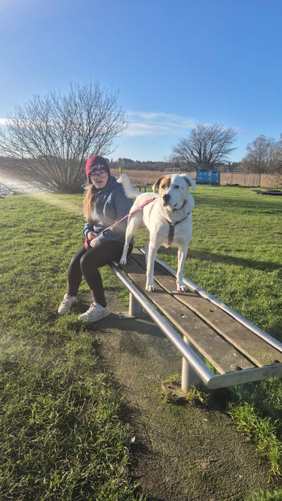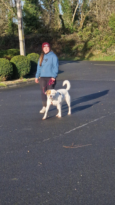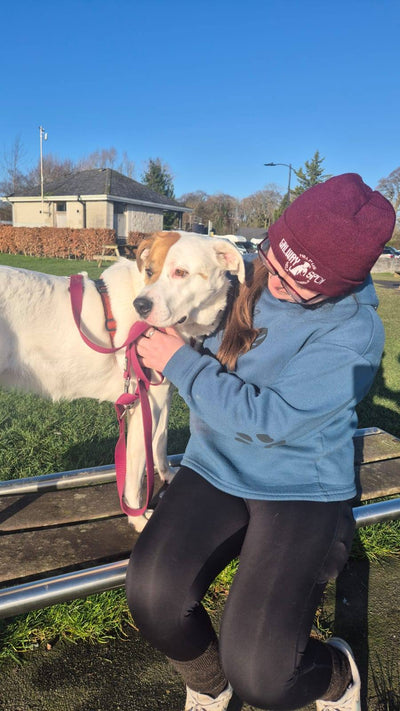 Cleo is now 5 years old. She travels well in the car, walks calmly on the lead, is fully housetrained and has a sweet and affectionate nature. She is a little wary and untrusting when meeting new people but once given the time to process it all she is gentle and loving and has no issues with different staff and volunteers at the sanctuary walking her. She also has a touch of sleep startle which again is just about letting her know you are there before touching her whilst sleeping (the issue with the toddler in the home starting to crawl).