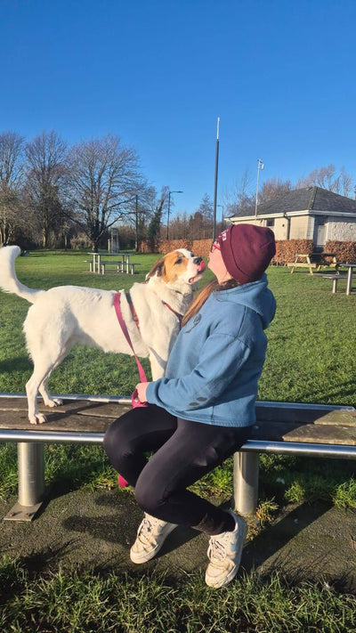 Very sweet Cleo was rehomed by us 4 yrs ago to a couple who have done amazing work with her. She arrived as a terrified wreck and whilst she overcame a lot of that fear during her stay, her family have really brought her on to the girl she is today.