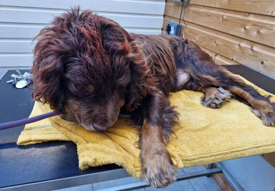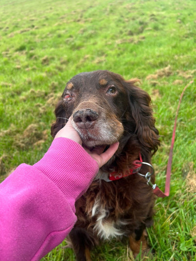 After a week of wonderful care, in our vets A Country Practice Vet Clinic, Cognac was allowed home to our sanctuary. Aged 7, this sweet kind boy just seemed grateful to have a warm bed, food, walks and love we could tell he had received very little human love before.