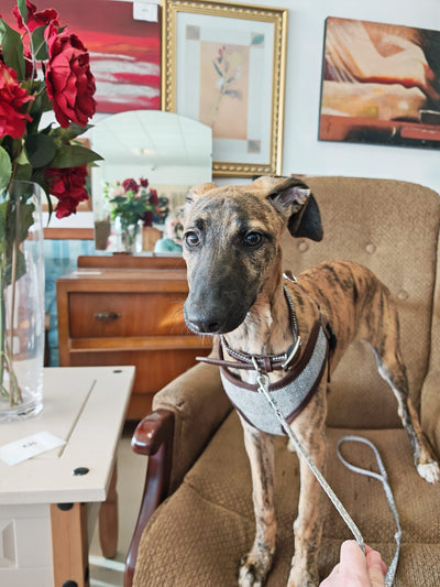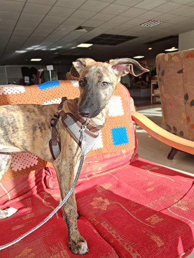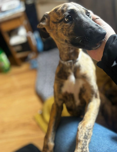 A lively, adventurous, fun and, at times, a cheeky pup, Dora is looking for a home that can offer her mental and physical stimulation as she starts to explore the world. She needs someone at home with her all day due to her young age and the fact that Lurcher pups can be very nosey, usually sticking their noses into all the things they shouldn't. Dora has started her harness and lead training and is doing very well getting used to different noises and traffic that she previously knew little about. She is still toilet training and is doing well.