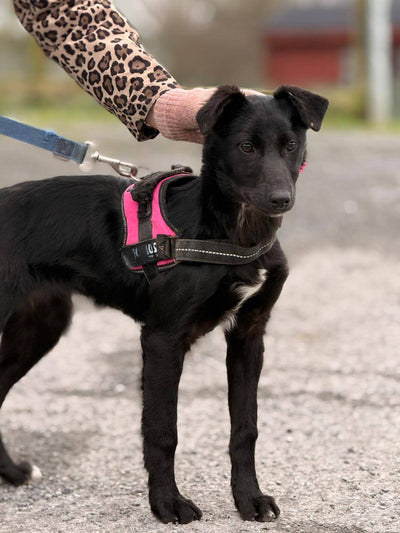 Nearly one week on Merry has found her mojo and inner puppy. She is a sweet, lovable girl with a cheeky attitude and a clever mind. She has already learned how to walk on a harness and loves her walks up the road with the other dogs though she does like to be out in front bossing her two male doggy friends around.