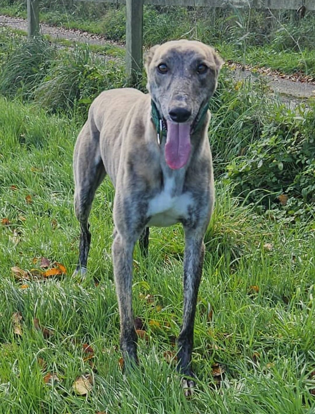This beautiful brindle Lurcher boy is approximately 18 months old and he has the biggest heart. Friends with everyone he meets, Moloney is a very sociable boy and has represented GalwaySPCA at a couple of event where he behaved with perfect manners.