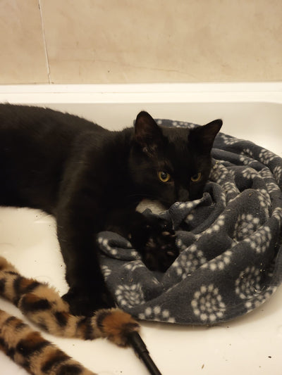 With the cattery always full beyond capacity, separating the girls in-house wasn't an option, so the decision was made that they should to the right home if it came up for either of them, we wouldn't hold them back. With Cosmos charisma and charm, it wasn't long before she won over an adopter and has now settled into her new home with not a second thought for her sister.