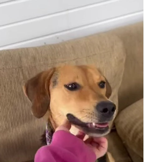 Seles is a sweet, kind natured beagle x girl who has been in our care for 116 days after she, along with 4 other dogs(all since rehomed), were removed from horrendous living conditions. At first Seles had no concept of how to interact with humans, she just wanted to run, nose to the ground and would constantly ignore any efforts we made to get her to interact with us.