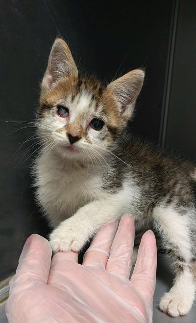 13 weeks ago we answered the call about a tiny kitten alone and in a terrible state in Galway City. The kind tourists that discovered him, kept an eye on him as our team made their way to the location. Tatum was underweight, had a heavy parasite burden and, due to cat flu, his eyes were crusted over and very sore. It was a long few weeks getting him on the right track, and for a very long time we were sure we might loose the eye if not both! But thankfully that wasn't the case.