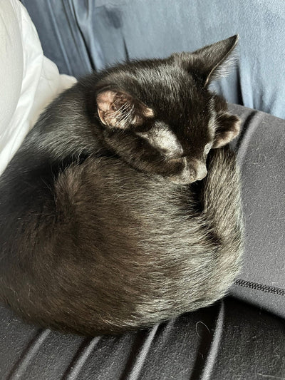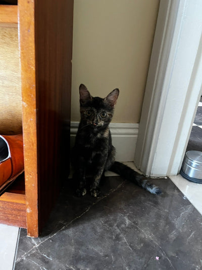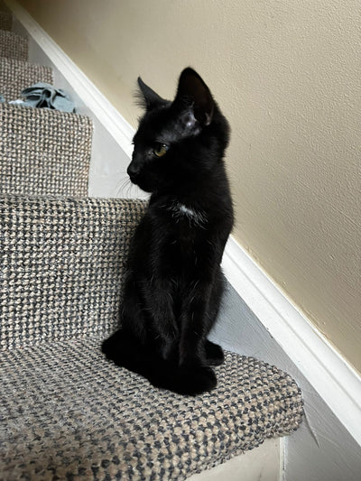 Viscount is a baby void. She’s slinky and fast and manages to convince you she has disappeared, strong explorer energy. She’s is a darling little thing though. She likes to be petted and has a big purr. (Black)