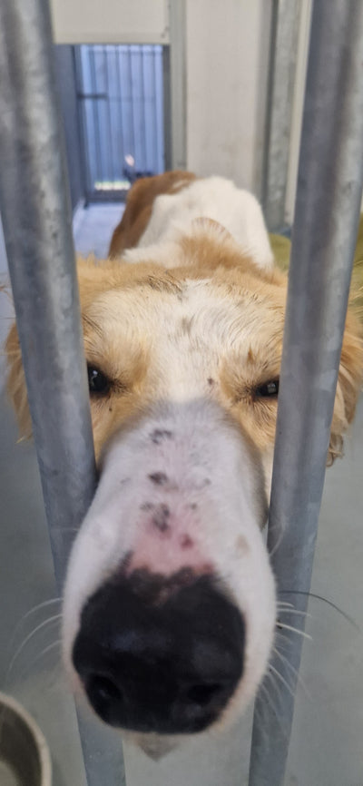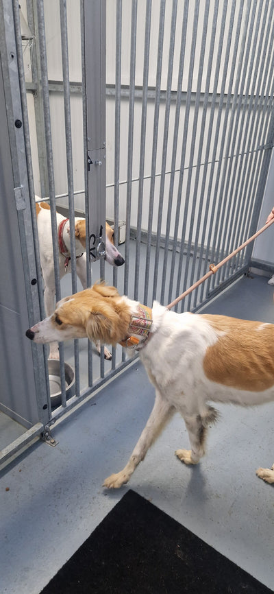 We have welcomed this little Saluki Girl from Offaly Pound where she had been waiting patiently for us to get a free kennel. She is a small and wary little girl who has obviously had a hard previous life before being picked up as a stray but she is one who is slowly coming round and starting to settle into our routine.